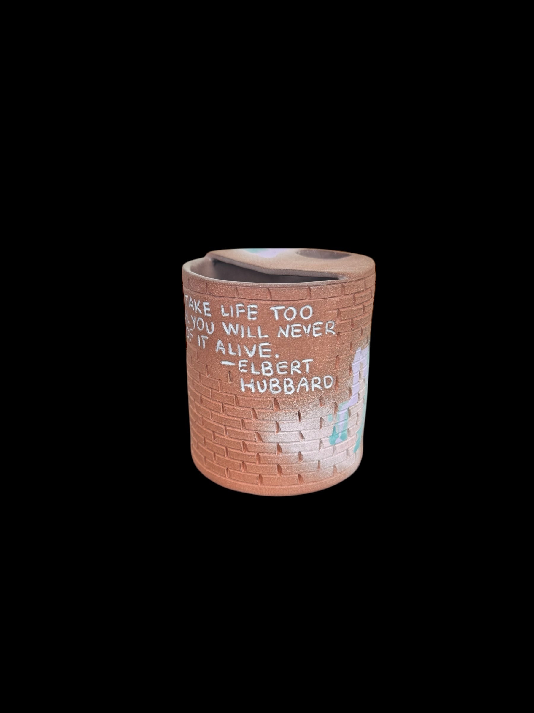 About: Stoneware, commercial glaze, mid-range electric fired, gold luster.