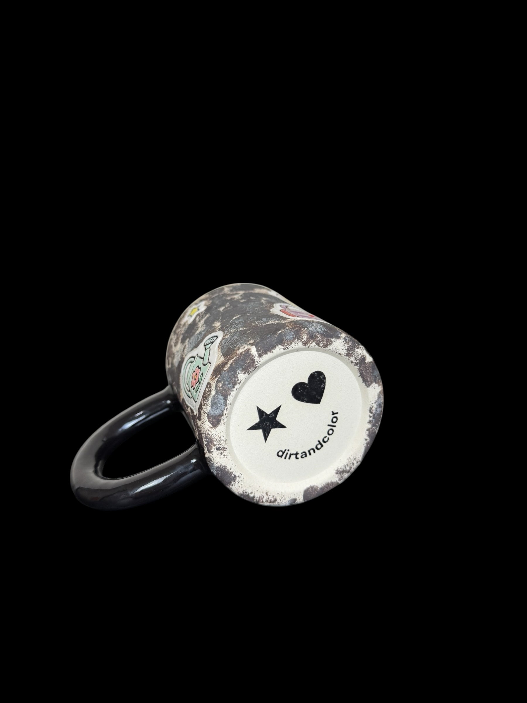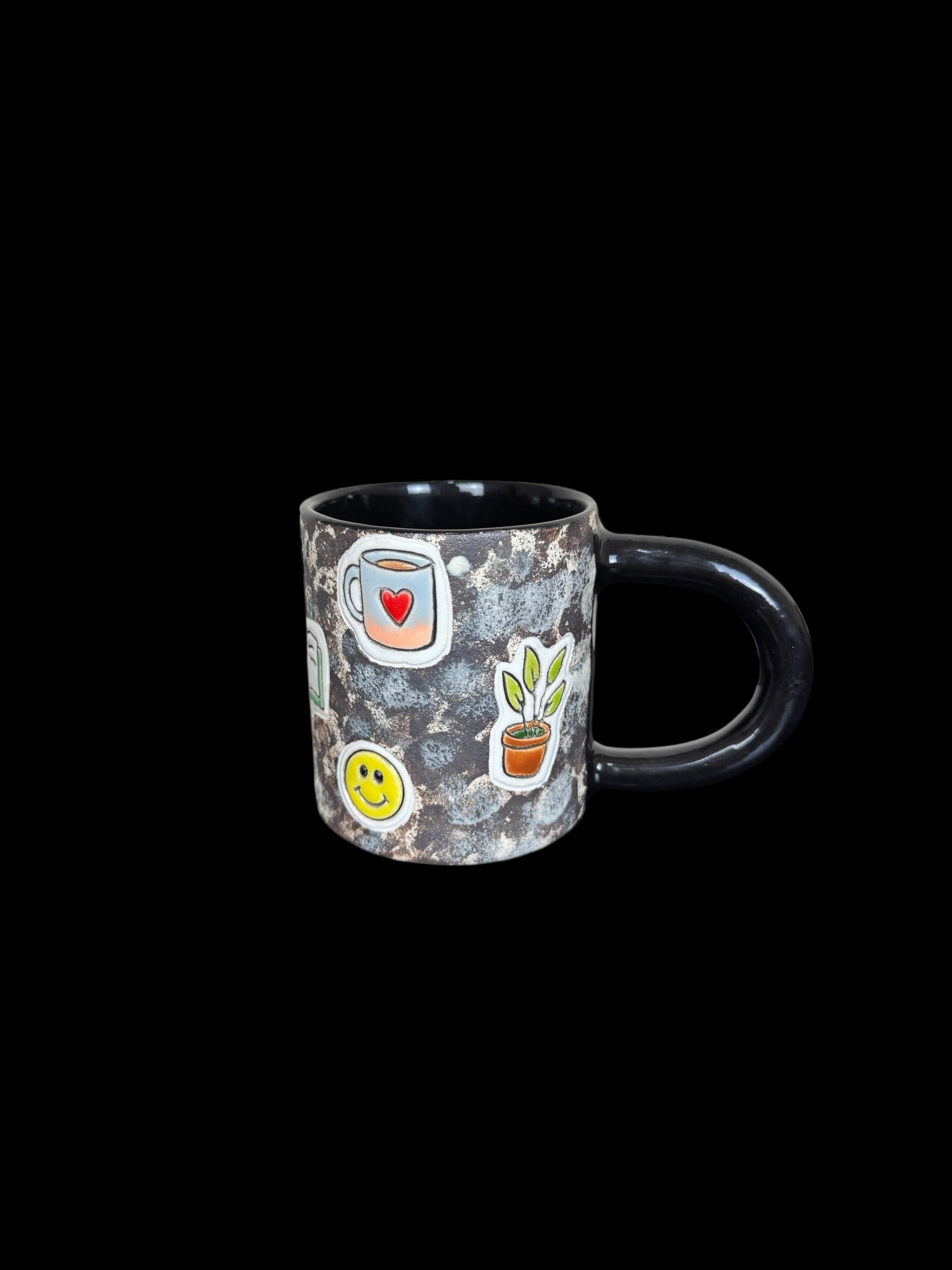 About: Stoneware, commercial glaze, mid-range electric fired mug with complimentary key chain of miniature sized version of the mug.