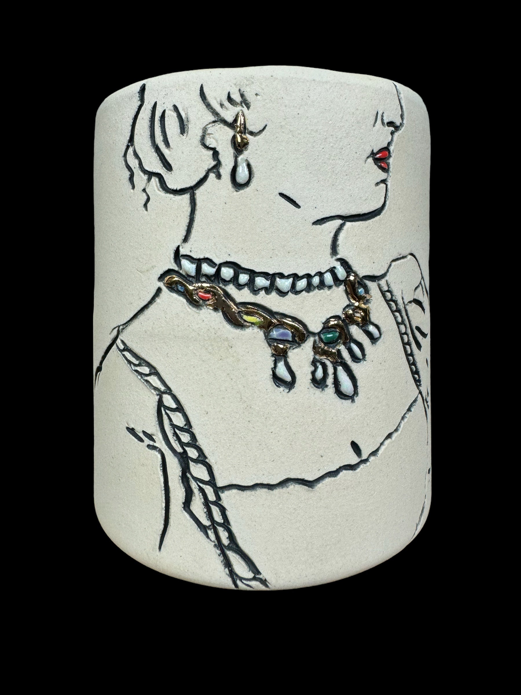 About: Stoneware, commercial glaze, mid-range electric fired ,gold / pearl luster.